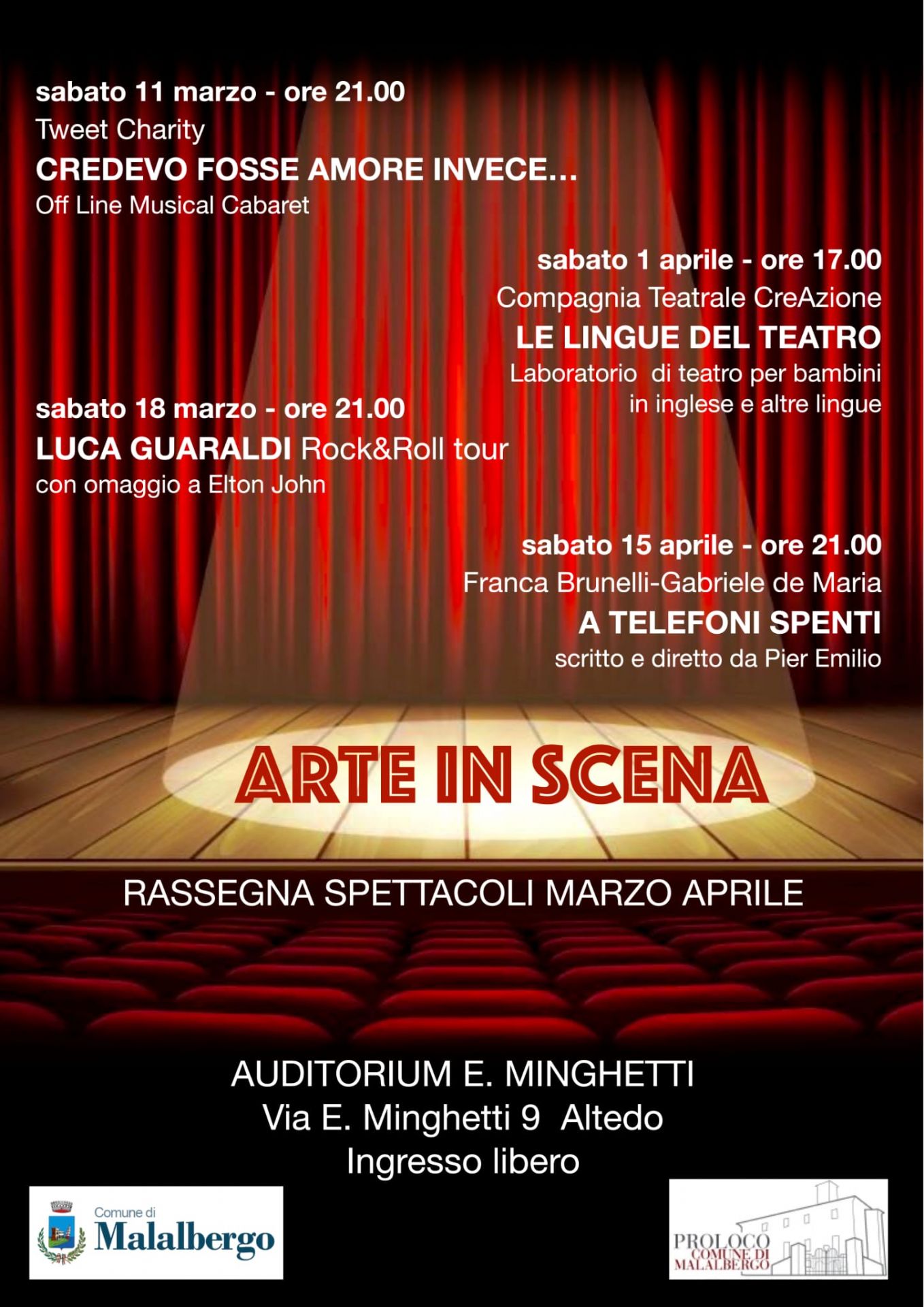 Rassegna spettacoli Marzo / Aprile presso Auditorioum Minghetti di Altedo.