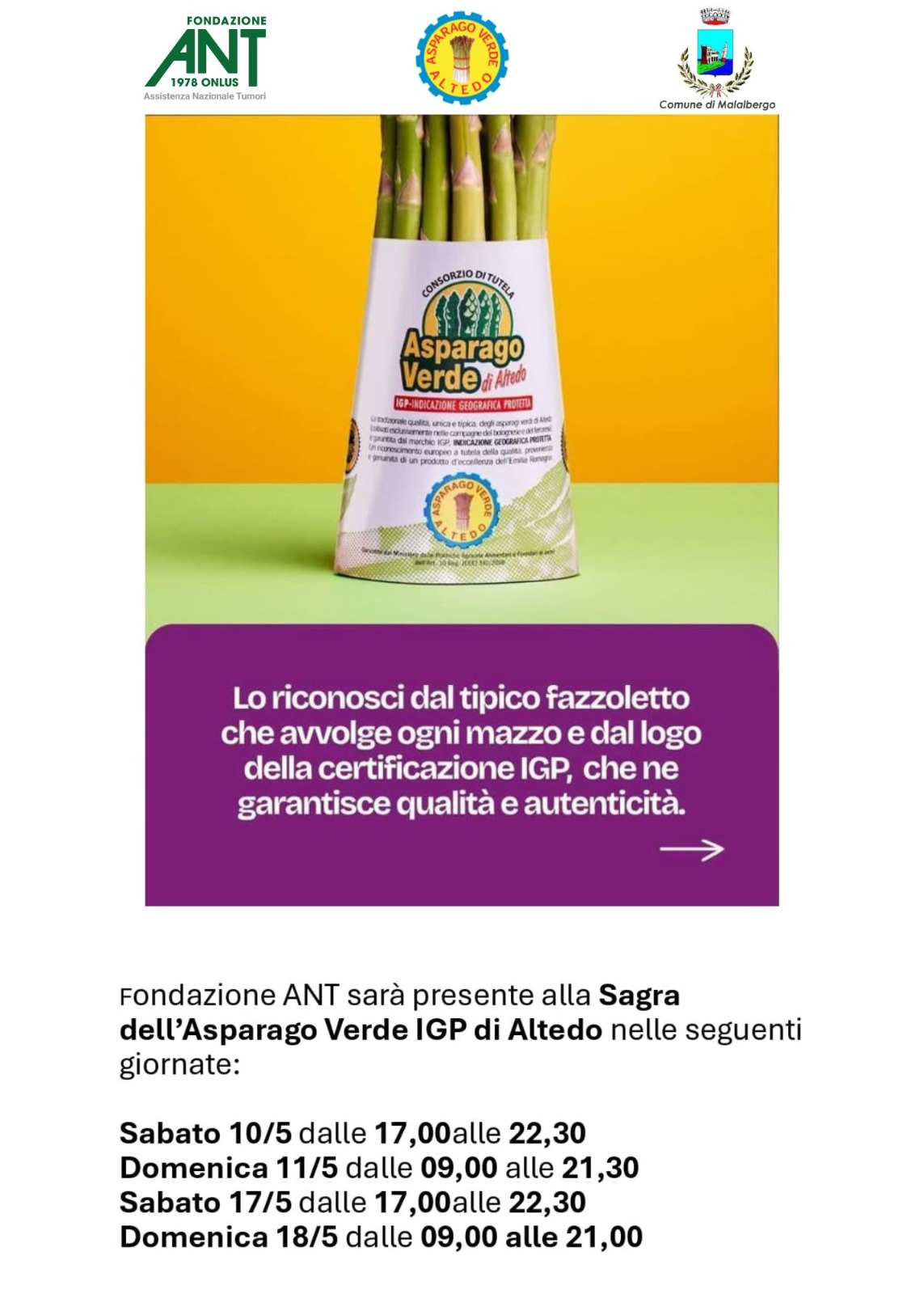 Fondazione ANT alla Sagra dell'Asparago Verde di Altedo