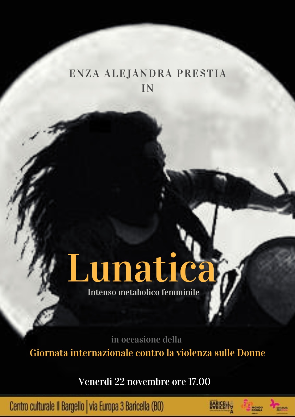 - Inaugurazione della mostra fotografica “Crisalide”: la fotografa Paola Perrone presenta il suo progetto artistico, accompagnata dalle note di Enza Alejandra Prestia che si esibisce nello spettacolo musicale “Lunatica” di propria autorìa, un viaggio unico nel mondo della determinazione e primordialità tipici del femminile. La mostra, come si evince già dal simbolico titolo "Crisalide", esplora il processo di trasformazione e rinascita di una donna sopravvissuta alla violenza di genere.