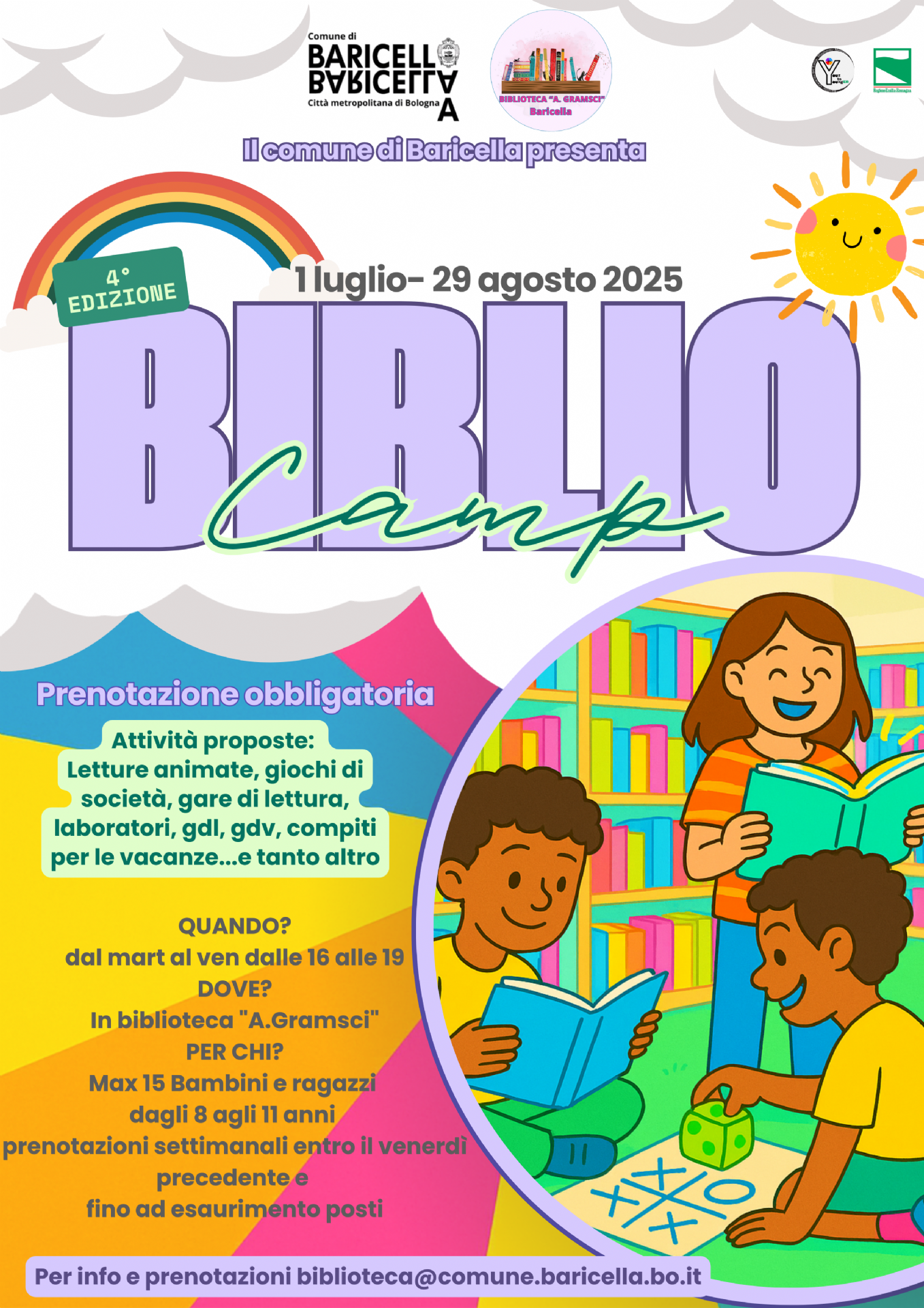 L’estate è finalmente tornata e con lei anche il desiderio di stare insieme, di divertirsi e di vivere nuove avventure. Dopo il successo delle scorse edizioni, il Biblio Camp della Biblioteca Comunale di Baricella riapre le sue porte, pronto a trasformare ogni pomeriggio in un’occasione unica di crescita e creatività per i ragazzi del territorio.