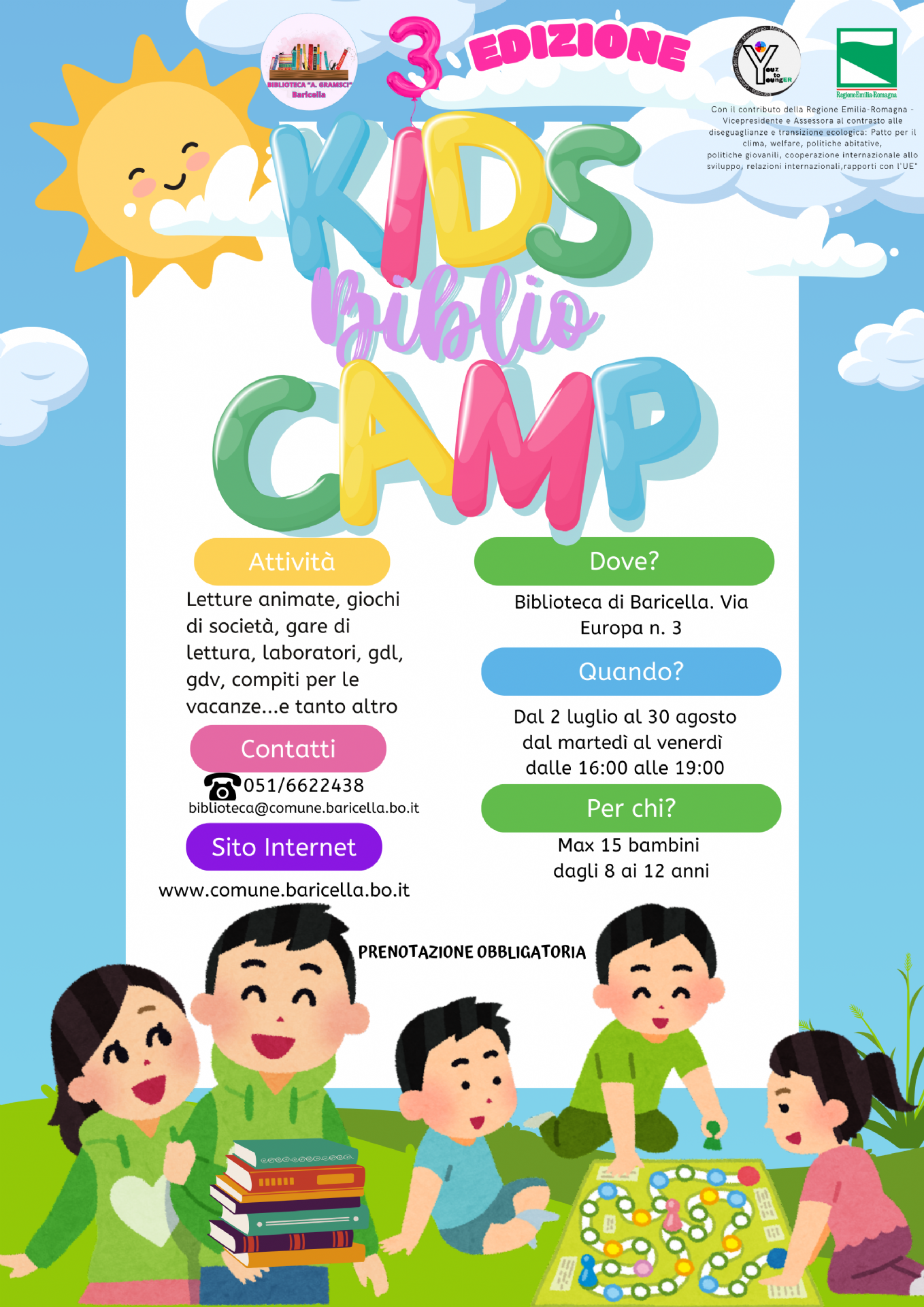 Il Biblio Camp, organizzato dalla Biblioteca Comunale di Baricella con il contributo della Regione Emilia-Romagna, è un’opportunità unica per vivere un’estate all’insegna della lettura, della scrittura creativa, della natura e della scoperta del territorio.