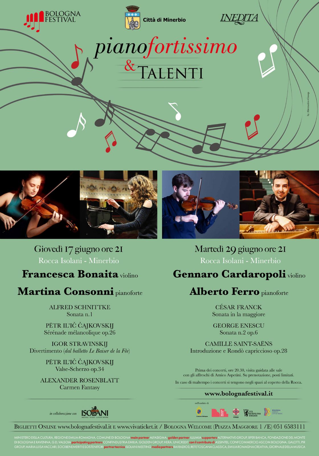 Martedì 29 Giugno alle ore 21.00 alla Rocca Isolani, nell'ambito della Rassegna Piano Fortissimo di Bologna Festival, si terrà il Concerto con Gennaro Cardaropoli (violino) e Alberto Ferro (pianoforte)