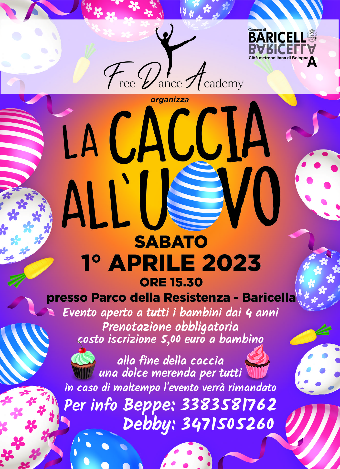 L'Associazione Free Dance Academy vi aspetta Sabato 1 Aprile alle 15:30 presso il Parco della Resistenza di Baricella per la Caccia all'uovo! Un evento aperto a tutti i bambini e a tutte le bambine dai 4 anni in su.