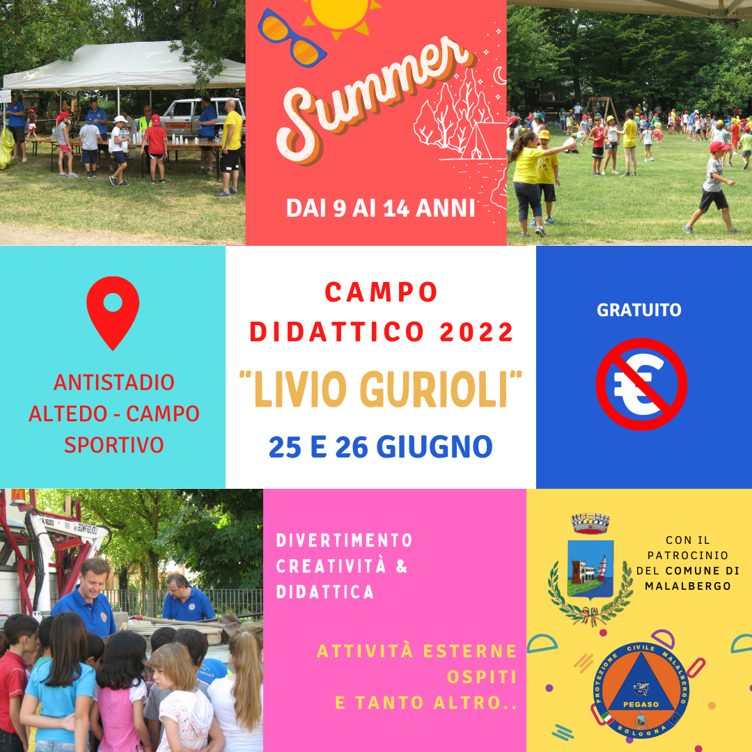 La Protezione Civile Pegaso di Malalbergo organizza per il 25 e il 26 giugno il campo didattico per i ragazzi dai 9 ai 14 anni!