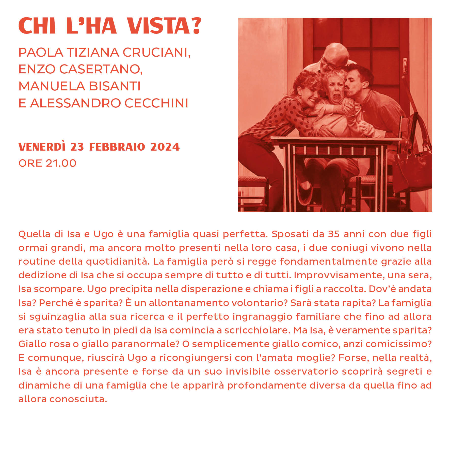 In scena Paola Tiziana Cruciani, Enzo Casertano, Manuela Bisanti e Alessandro Cecchini in Chi l'ha vista?