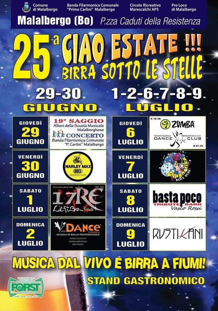 Crescentine, tigelle, birra, buona musica, sedie e tavoli, nella caratteristica piazzetta davanti lo storico Palazzo Marescalchi, il tutto sotto le stelle nelle calde serate d'estate.