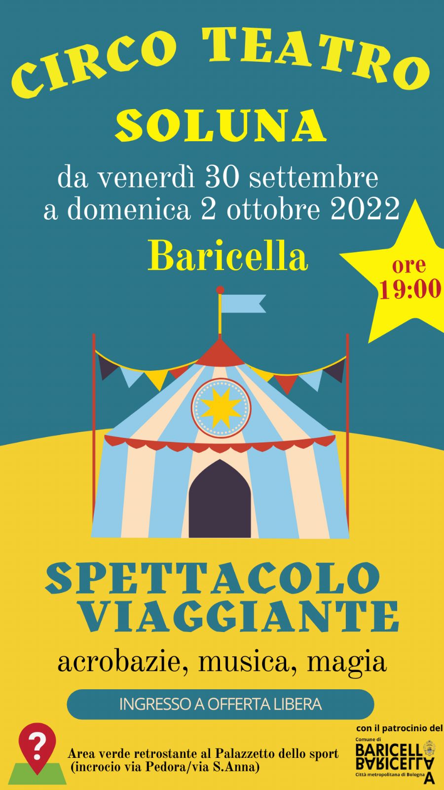 Sarà possibile vedere gli spettacoli da venerdì 30 settembre a domenica 2 ottobre, alle ore 19.00, presso l'area verde retrostante il Palazzetto dello Sport di Baricella.