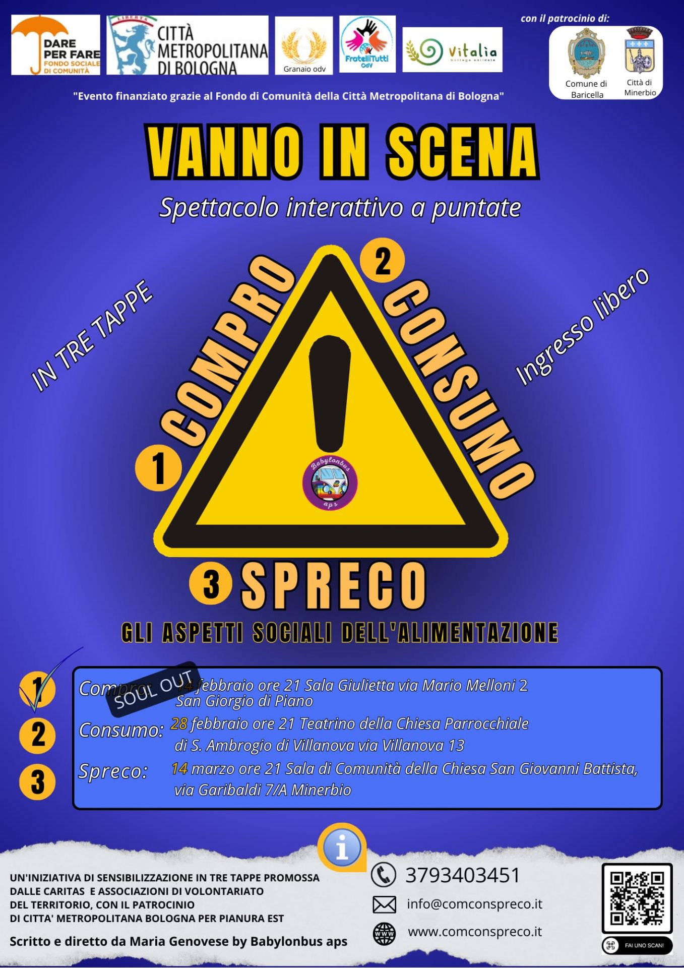 A Minerbio sabato 14 marzo 2026 alle ore 20.00 presso la Sala di Comunità della Chiesa Parrocchiale San Giovanni Battista (Via Garibaldi 7/2) si terrà lo spettacolo conclusivo del workshop sul tema SPRECO, scritto e diretto da Maria Genovese di Babylonbus Aps.