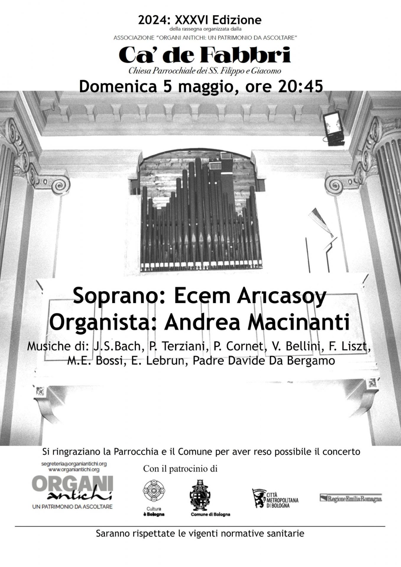 Domenica 5 maggio 2024 alle ore 20.45 nella Chiesa parrocchiale dei SS. Filippo e Giacomo di Cà de' Fabbri si terrà il concerto 2024 di organi antichi della XXXVI edizione del rassegna organizzata dall'associazione "Organi antichi: un patrimonio da ascoltare"