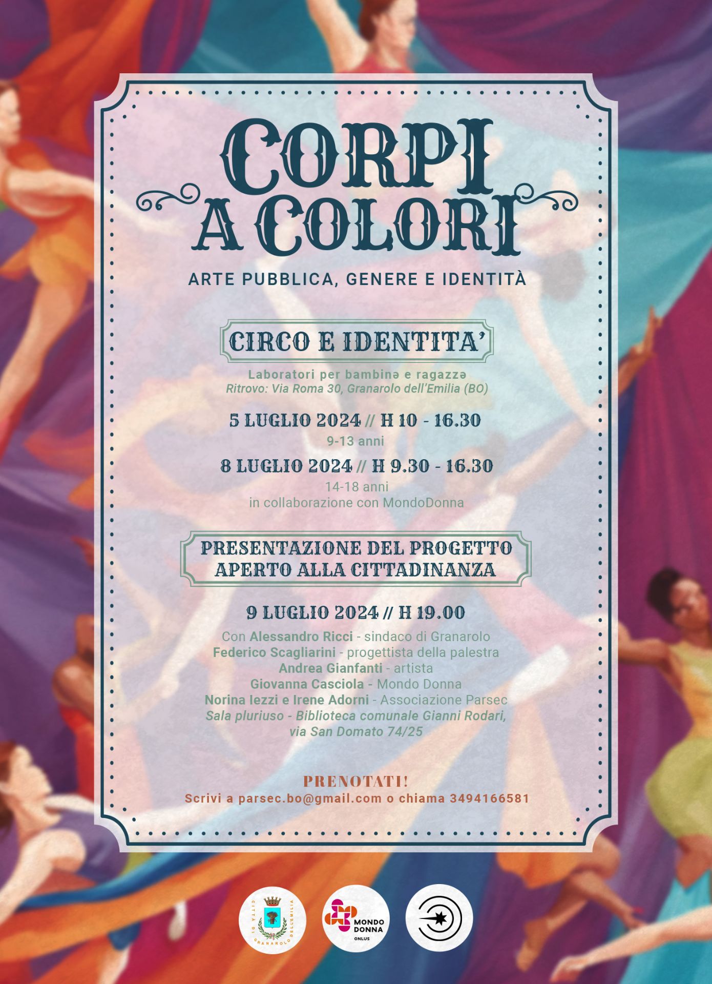 Il Comune di Granarolo dell'Emilia, insieme a MondoDonna onlus e al collettivo Parsec, presenta "Corpi a Colori", un progetto innovativo che esplora le tematiche di arte pubblica, genere e identità attraverso una serie di laboratori e una presentazione aperta alla cittadinanza.