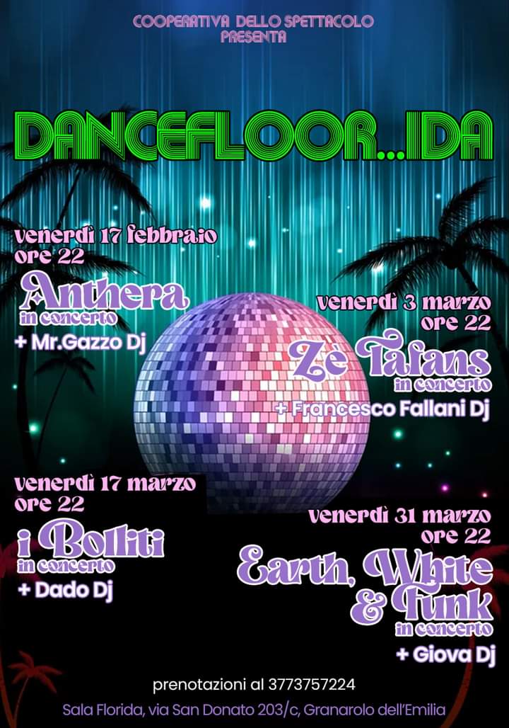 Quattro serate speciali, tutte di venerdì, con "DANCEFLOOR...IDA": a partire dalle 22, band di successo e dj si alterneranno sul palco e alla consolle per offrire musica di qualità e grande intrattenimento.