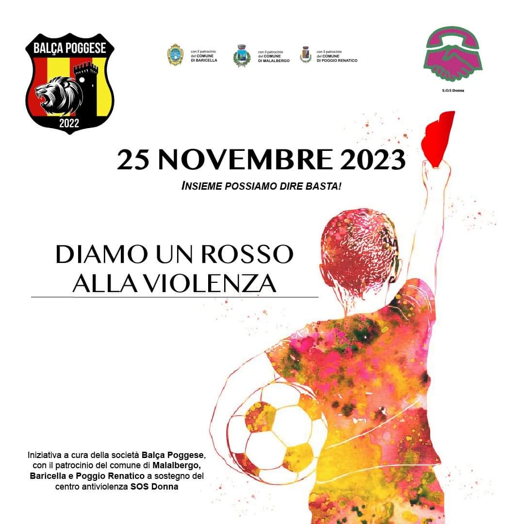 Per la Giornata Internazionale Contro la Violenza sulle Donne sabato 25 Novembre si terrà l'iniziativa Diamo un Rosso alla Violenza a cura della società Balça Poggese e patrocinata dal comune di Baricella.