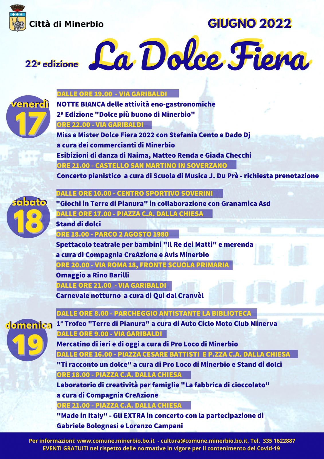 Eventi gratuiti: per informazioni, cultura@comune.minerbio.bo.it, 335 16622887