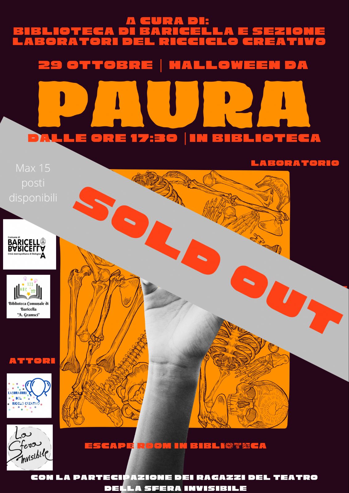 Ci saranno racconti del terrore e strani incontri, qualche dolcetto e tanti scherzetti per i bimbi. Il percorso terminerà in biblioteca che, per l’occasione, si trasformerà in un luogo stregato. Streghe, scheletri, mostri, facce da paura e tante sorprese, invaderanno il nostro centro culturale e per poter scappare i bambini/ragazzi dovranno superare numerose prove di logica. Una vera e propria escape room autoprodotta dalla biblioteca che permetterà di passare un pomeriggio divertente insieme.