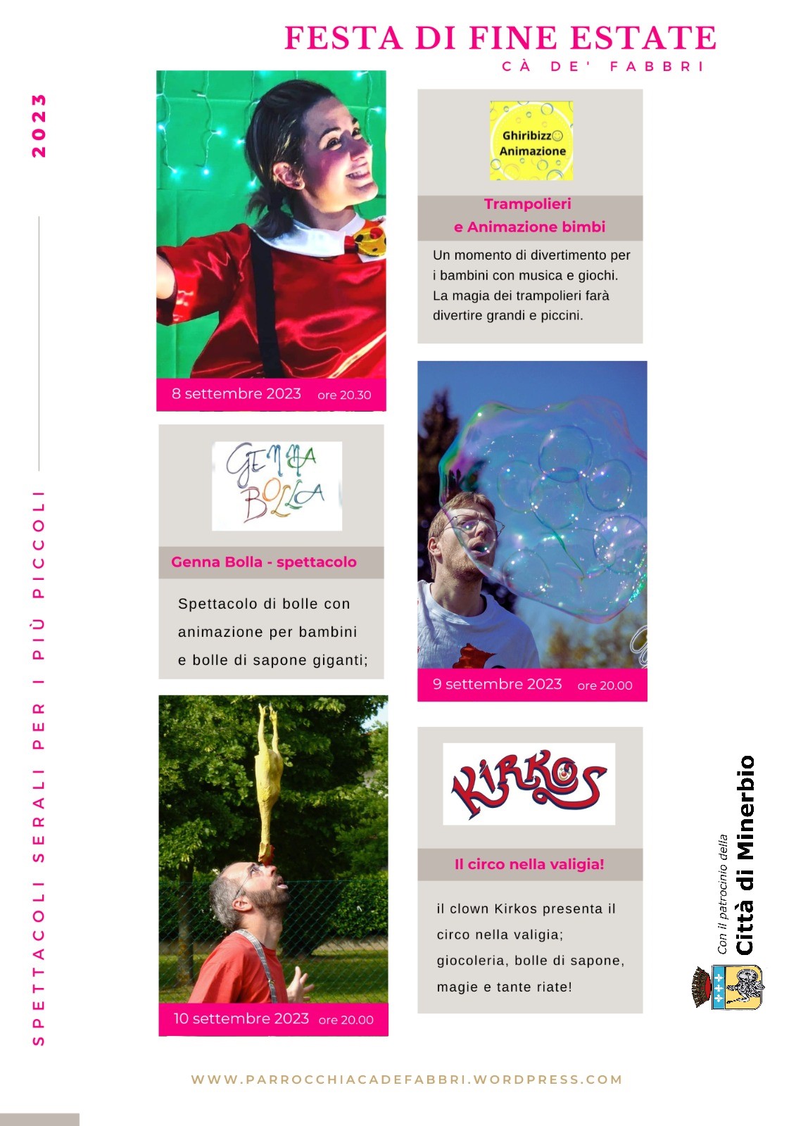 In allegato è possibile consultare tutti gli appuntamenti degli spettacoli serali per i bambini.