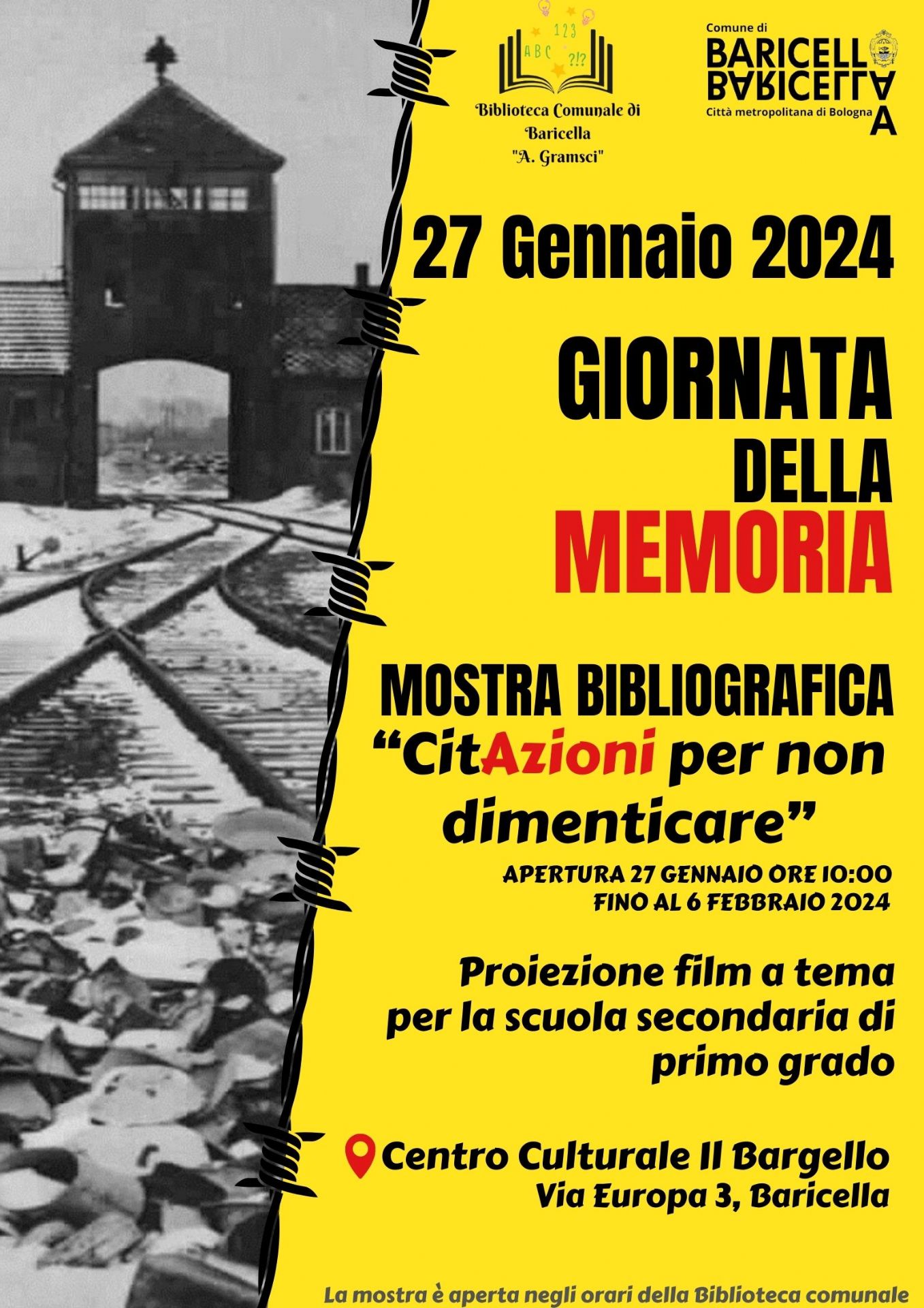 Per commemorare quell’anniversario, presso il Centro culturale il Bargello, saranno esposte in mostra le "CitAzioni per non dimenticare" una serie di citazioni scelte sulla shoah, che raccontano questa pagina buissima della storia dell'essere umano, per mantenere viva la tragedia dell'olocausto e trasmettere, soprattutto alle nuove generazioni, la memoria di fatti che oggi sembrano lontani e sfumati. L'iniziativa sarà arricchita dalla mostra Bibliografica allestita con le opere scelte dalla biblioteca comunale con proposte di lettura per tutte le età e tante novità editoriali sul tema.
