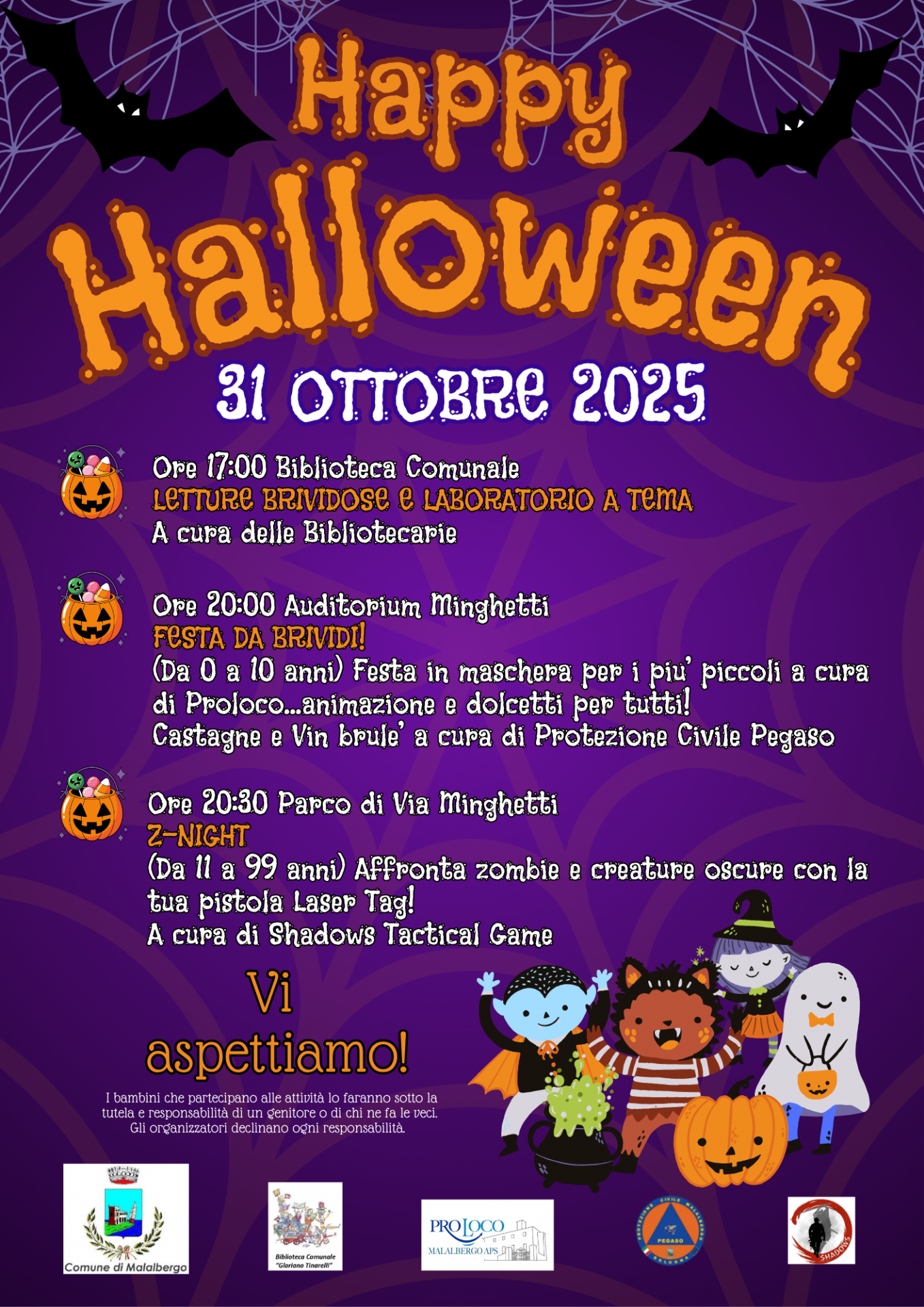 - Ore 20:00 FESTA DA BRIVIDI ( da 0 a 10 anni) Festa in maschera per i più piccoli presso l'Auditorium Minghetti