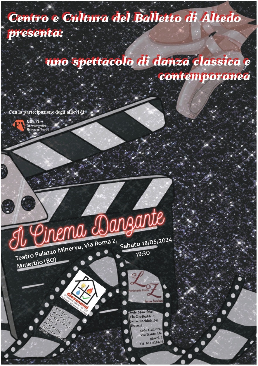 Sabato 18 maggio alle ore 19.30 presso Palazzo Minerva si terrà lo spettacolo di danza classica e contemporanea dal titolo "Il cinema danzante" del Centro e Cultura del Balletto di Altedo.