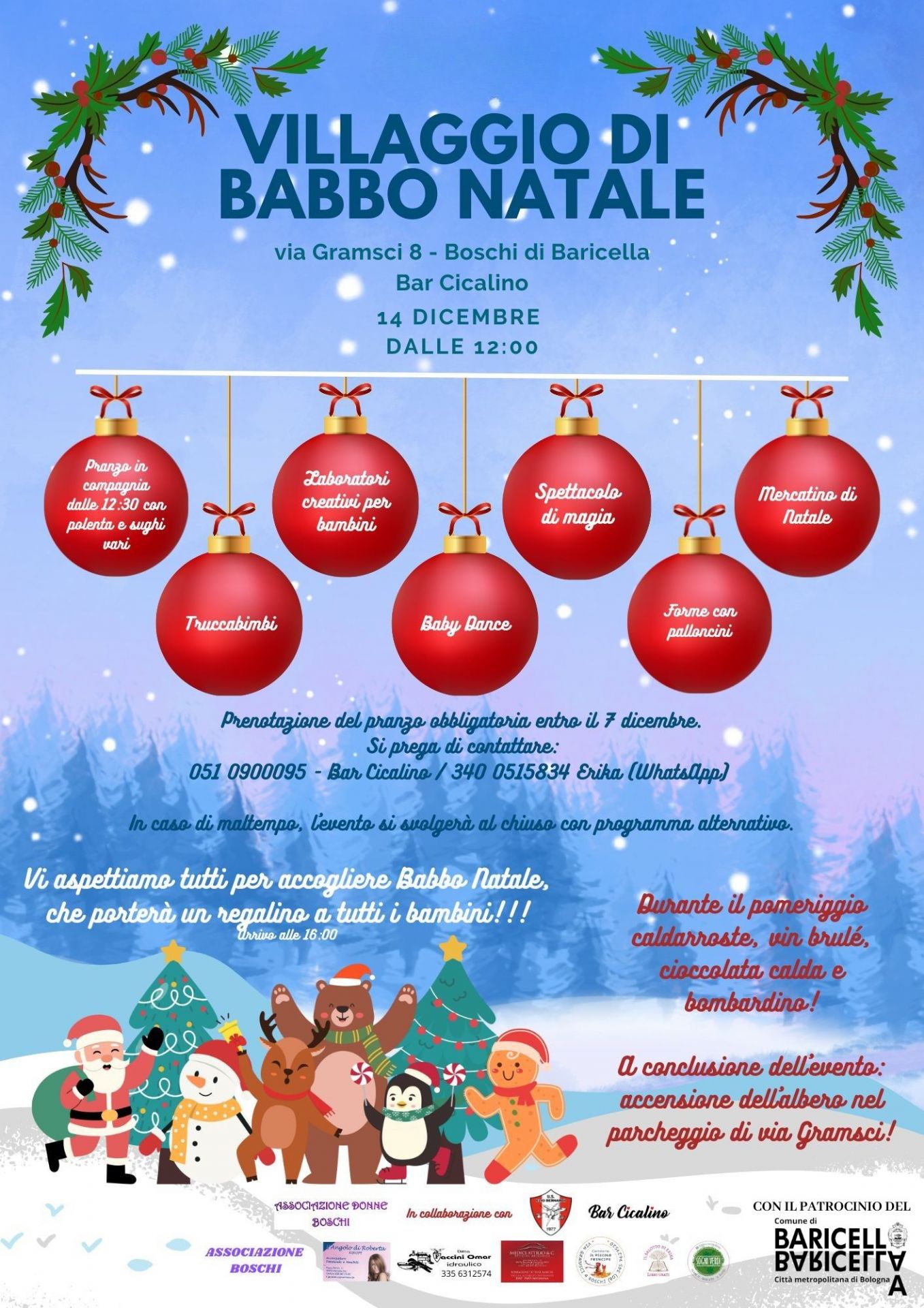 L' Associazione Donne di Boschi e Associazione Boschi, in collaborazione con le realtà del territorio, invitano tutta la cittadinanza a partecipare a “Il Villaggio di Babbo Natale”, in programma domenica 14 dicembre in via Gramsci 8, a Boschi di Baricella.