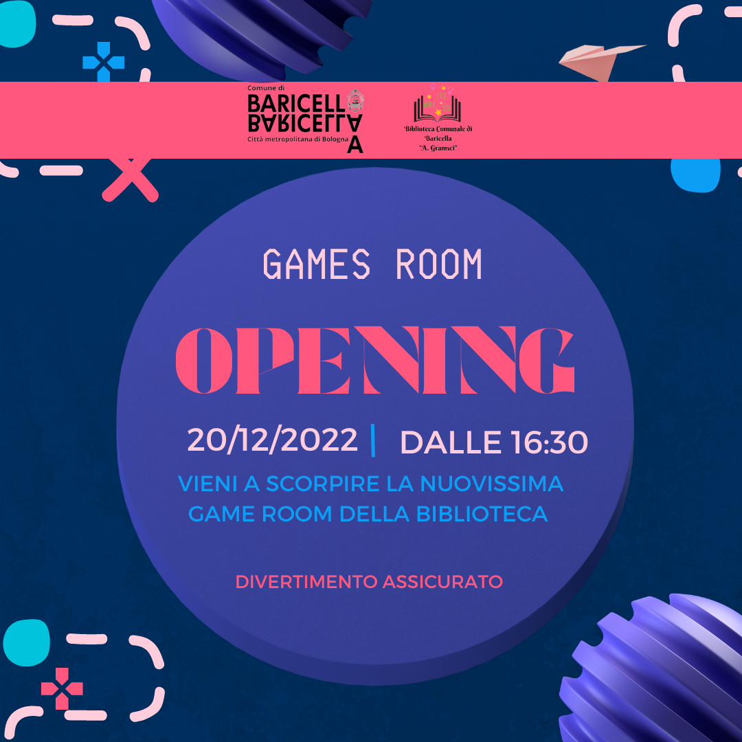 Martedì 20 dicembre dalle 16:30 fino alle 19:00 ci sarà l’inaugurazione della nuovissima game room in biblioteca.