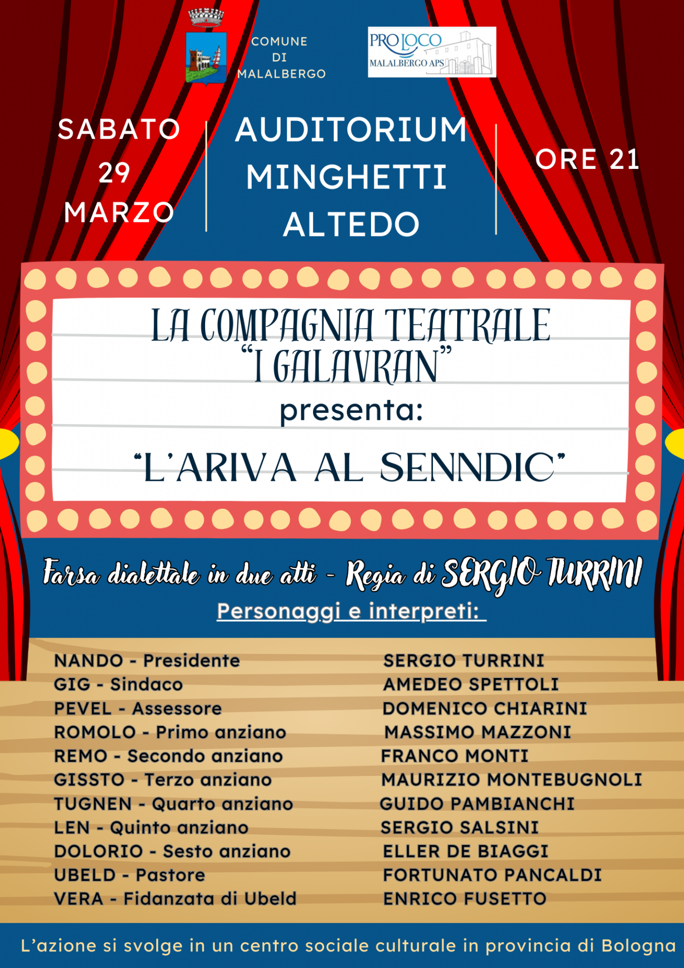 Sabato 29/03/2025 ore 21:00 presso l'Auditorium Minghetti ad Altedo.