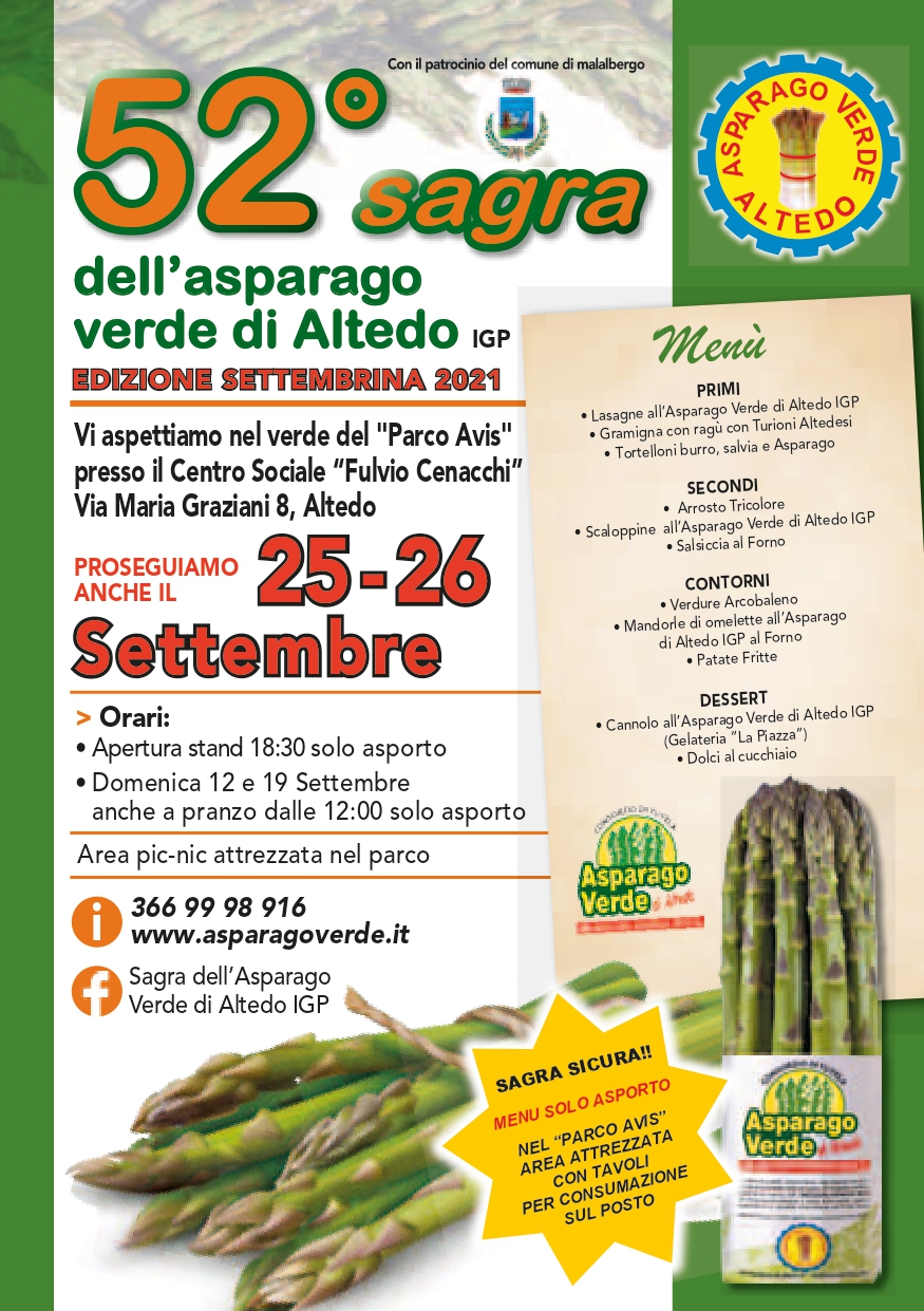 La 52^ Sagra dell'Asparago Verde di Altedo IGP prosegue anche il 25 e 26 Settembre