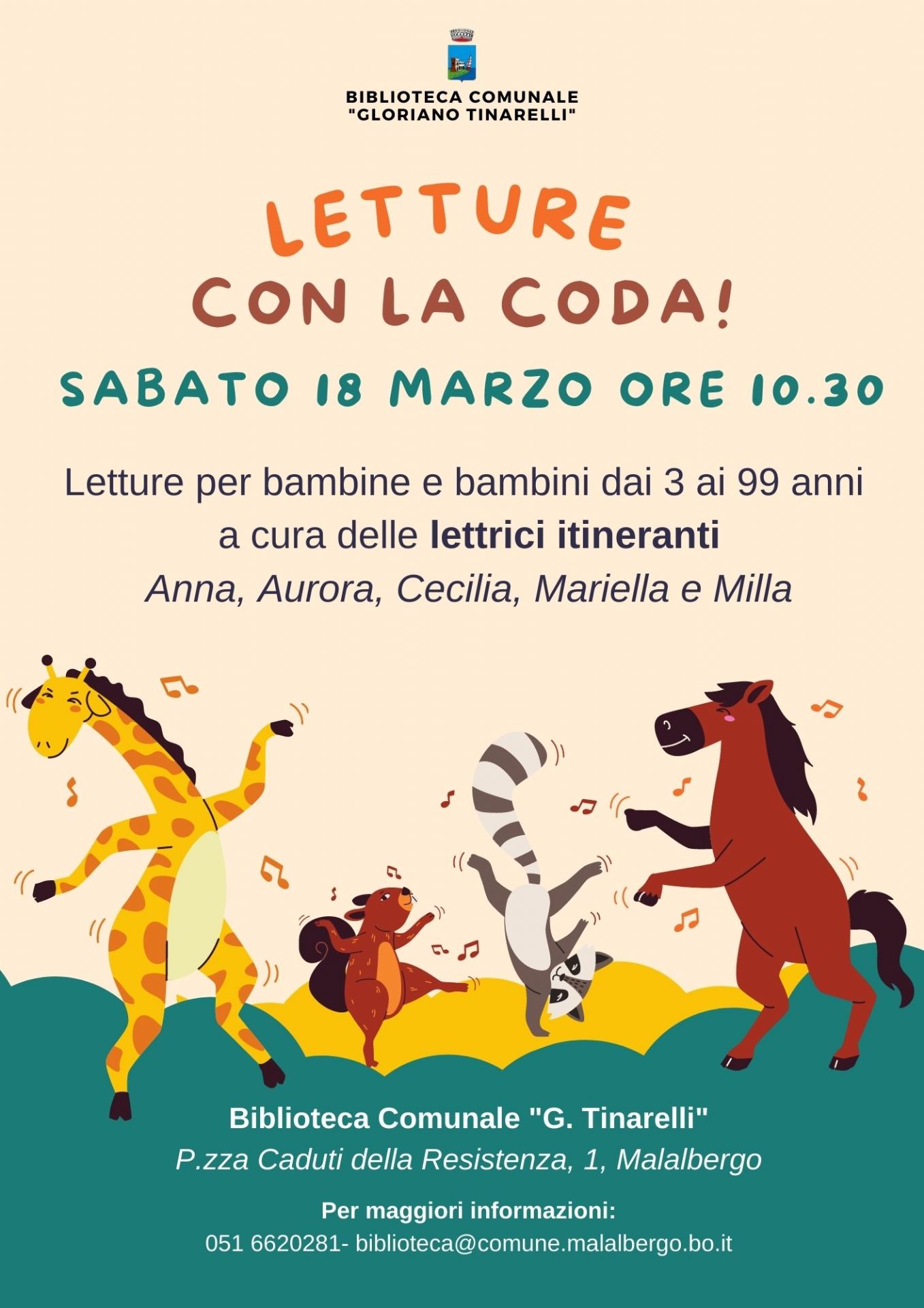 Sabato 18 marzo ore 10.30 in biblioteca Comunale Gloriano Tinarelli, ci saranno le letture per i bambini a cura delle lettrici itineranti.