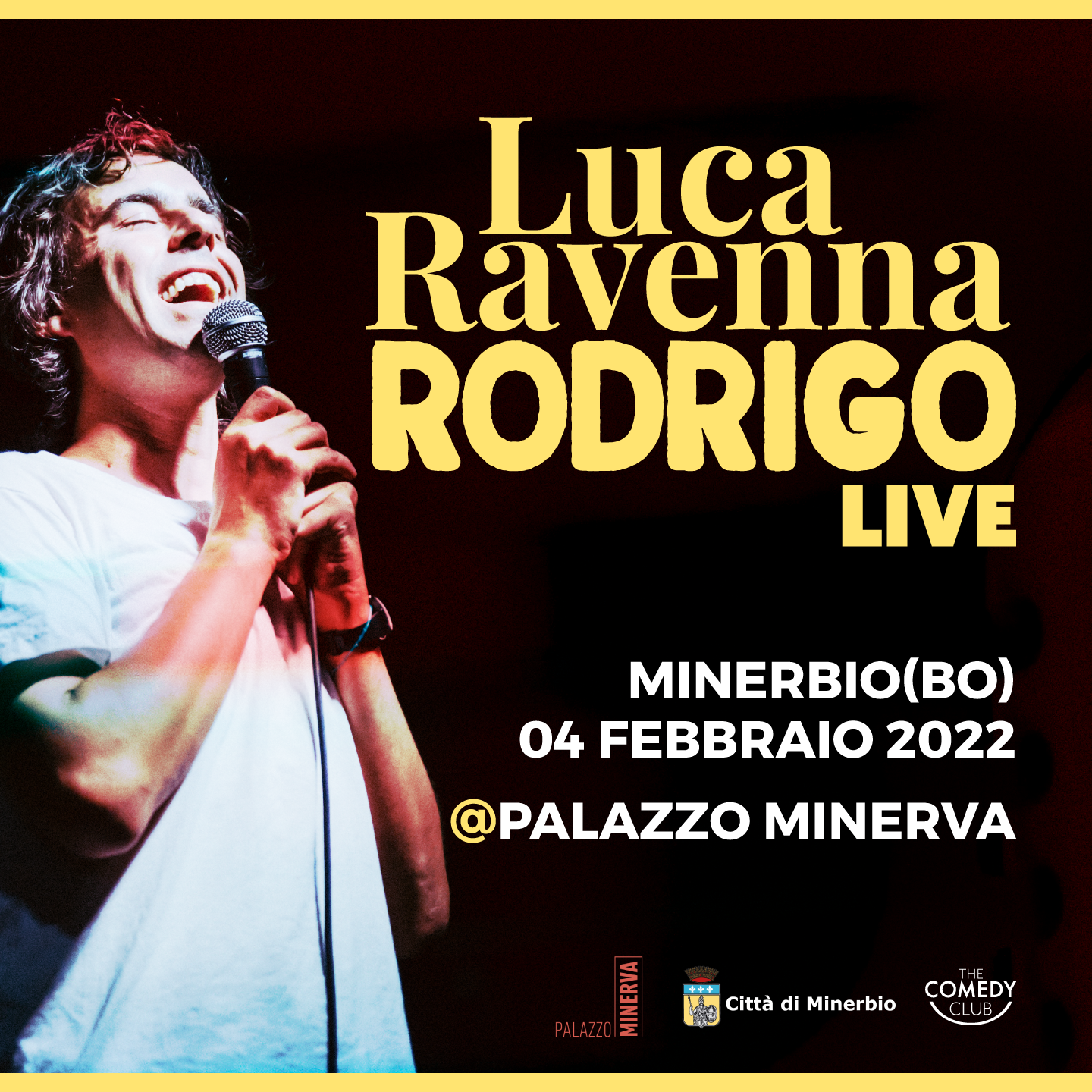 Venerdì 18 febbraio, alle ore 21.30, il comico di stand up comedy Luca Ravenna salirà sul palco di Palazzo Minerva, nell'ambito della rassegna Minerbio Off, per rispondere alle domande che propone nel suo esilarante spettacolo: "come lavora la pro loco in Italia e in Europa? Cosa si prova a partecipare al programma più visto d'Italia e a deludere la persona più potente del web? Cosa vuol dire lavorare per Vice, essere un predicatore, etero cisgender...?"