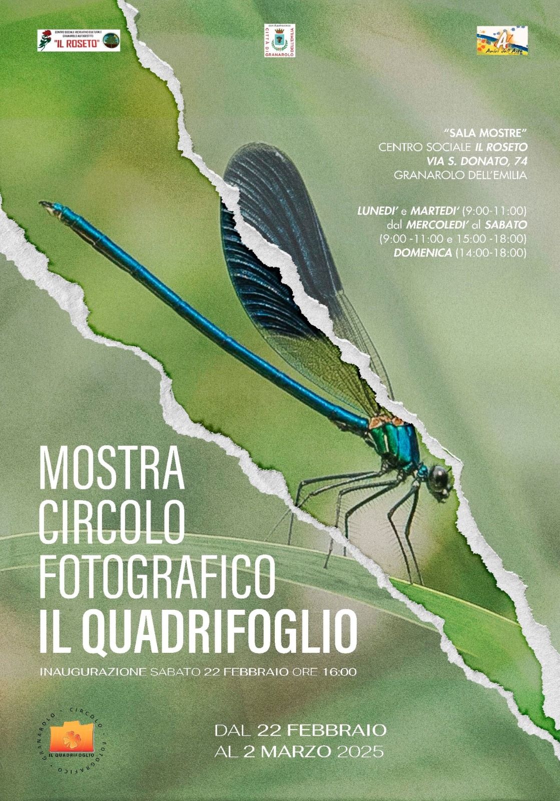 Dal 22 febbraio al 2 marzo 2025, la Sala Mostre del Centro Sociale Il Roseto (via San Donato, 74) ospiterà la mostra fotografica del Circolo Fotografico Il Quadrifoglio.