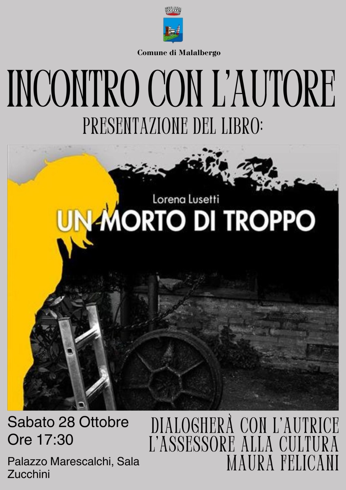 Sabato 28 Ottobre ore 17:30 in Sala Zucchini di Palazzo Marescalchi, presentazione del libro "Un morto di troppo" di Lorena Lusetti.