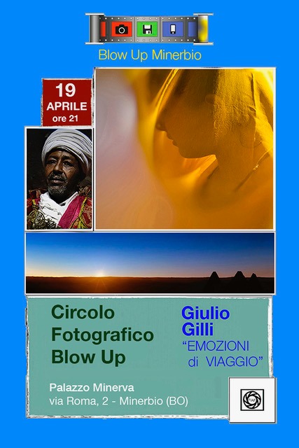 Venerdì 19 aprile 2024 alle ore 21.00 a Palazzo Minerva si terrà una serata di proiezioni fotografiche di Giulio Gilli up dal titolo "Emozioni di viaggio", a cura del Circolo fotografico Blow up.
