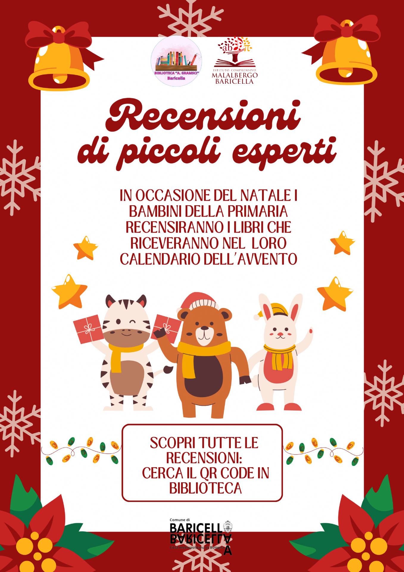 Quest'anno tante delle iniziative natalizie che abbiamo preparato per voi sono in collaborazione con la scuola primaria. Questa è un'iniziativa speciale a cui teniamo molto: i giovani alunni si trasformeranno in veri critici letterari! Grazie al calendario dell'Avvento, tutte le classi che ce ne hanno fatto richiesta hanno ricevuto un libro da leggere e recensire con cura. Ma non finisce qui: stiamo lavorando per realizzare anche audio-recensioni, così da rendere l’esperienza ancora più coinvolgente.
