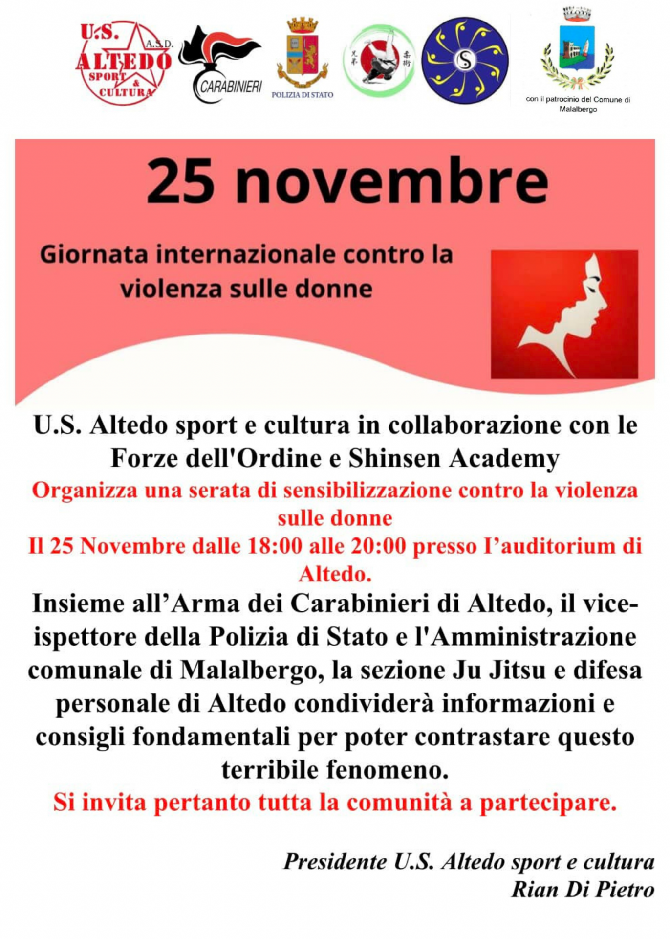 Serata di sensibilizzazione contro la violenza sulle donne organizzata da US Altedo con il patrocinio del Comune di Malalbergo.