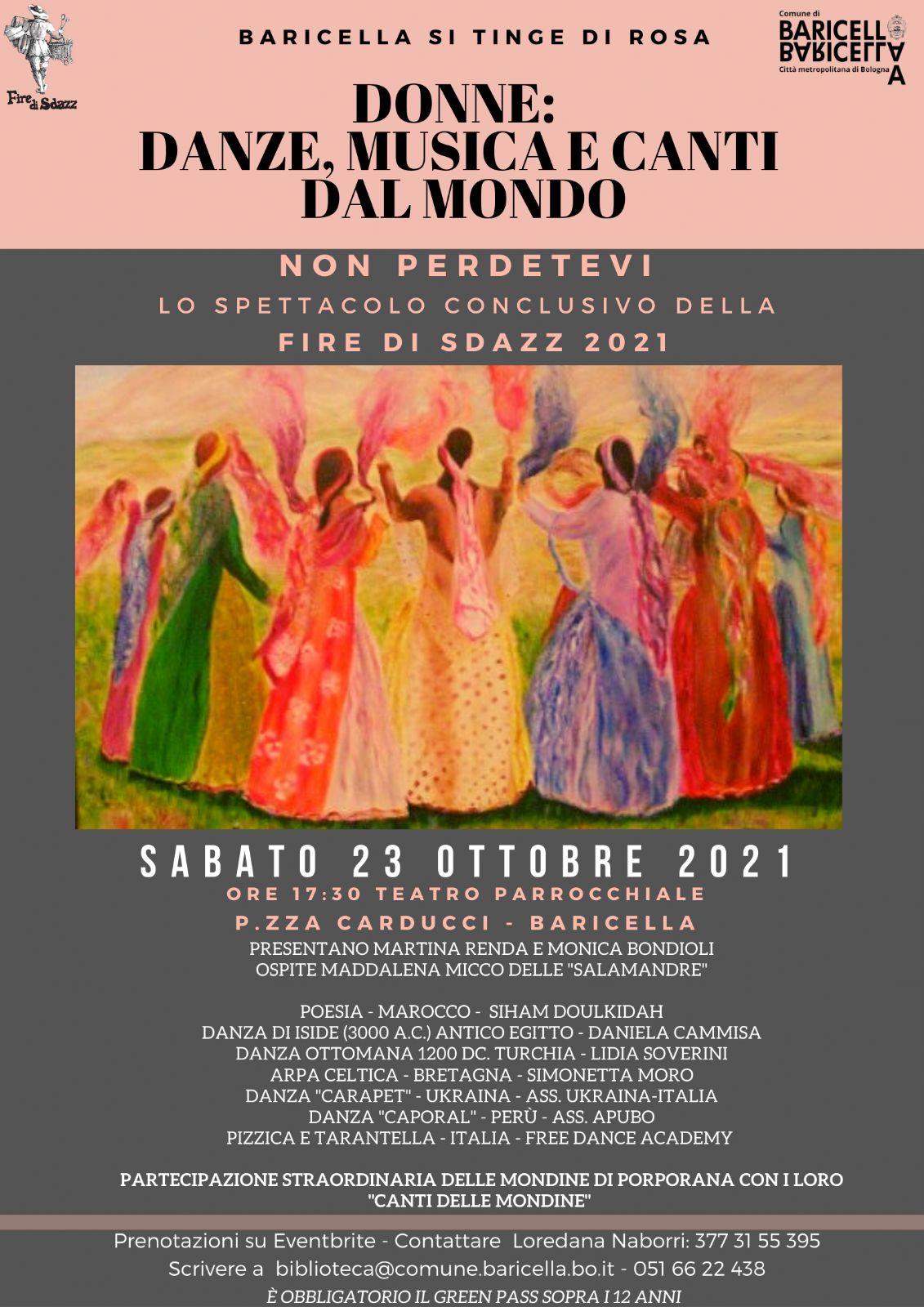 E allora dulcis in fundo, come si suol dire, il programma in rosa della Fiera del 2021 non poteva che concludersi con lo Spettacolo di danza e musiche "Donne dal Mondo" nel quale si esibiranno donne provenienti da varie parti del mondo.