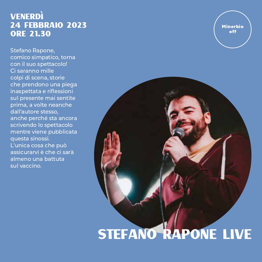 Venerdì 24 febbraio 2023 alle ore 21.30 in scena a Palazzo Minerva STEFANO RAPONE LIVE, secondo appuntamento della rassegna Minerbio OFF della stagione teatrale 2022/2023.