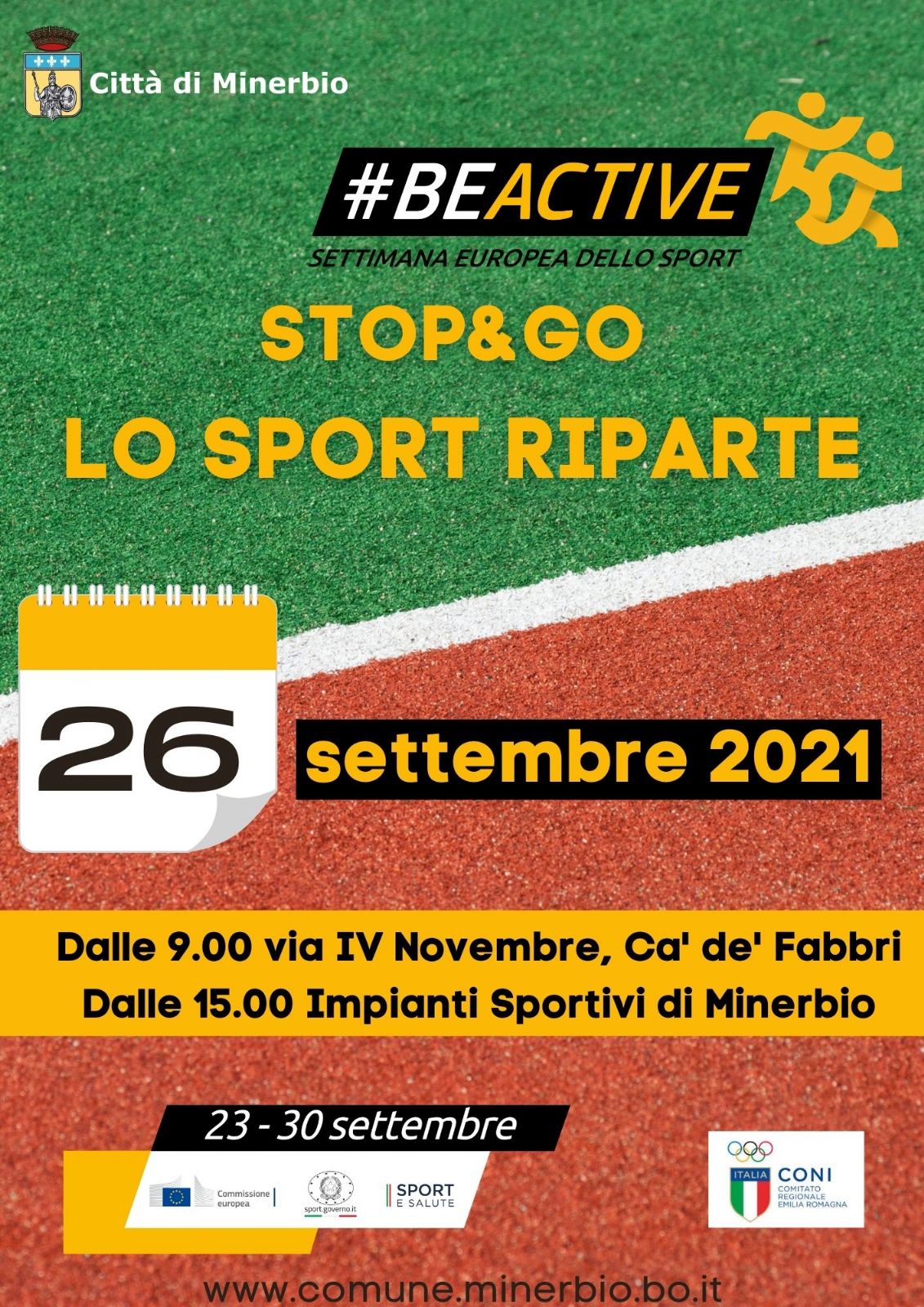 Domenica 26 settembre, in occasione della Settimana europea dello sport, si terrà a Minerbio l'evento "STOP&GO LO SPORT RIPARTE".