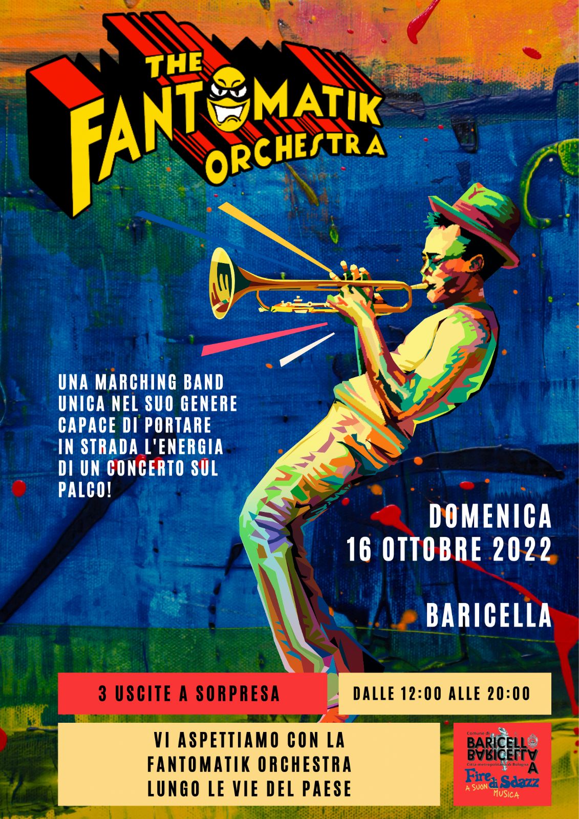 La vera marching band Italiana che, con la sua sezione fiati e percussioni, è in grado di esplorare una grande varietà di generi: dal Funk Rock, Etno, Prog, Jazz, Pop! Con la fantastica formazione strumentale, l’energia e la vitalità dei suoi 14 musicisti, con i Fantomatik Orchestra lo spettacolo musicale è garantito!