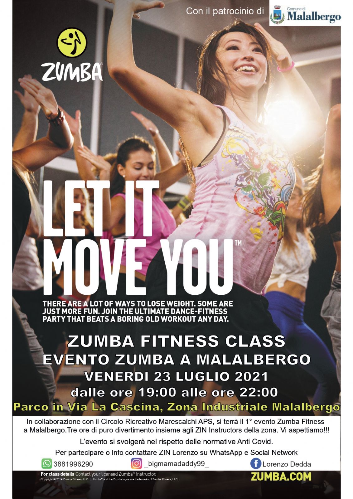 Venerdì 23 luglio 2021 dalle ore 19.00 alle ore 22.00 nel Parco di via La Cascina a Malalbergo si terrà il primo evento Zumba con l’obiettivo di creare un momento di aggregazione e convivialità insieme agli ZIN Instructors della zona.